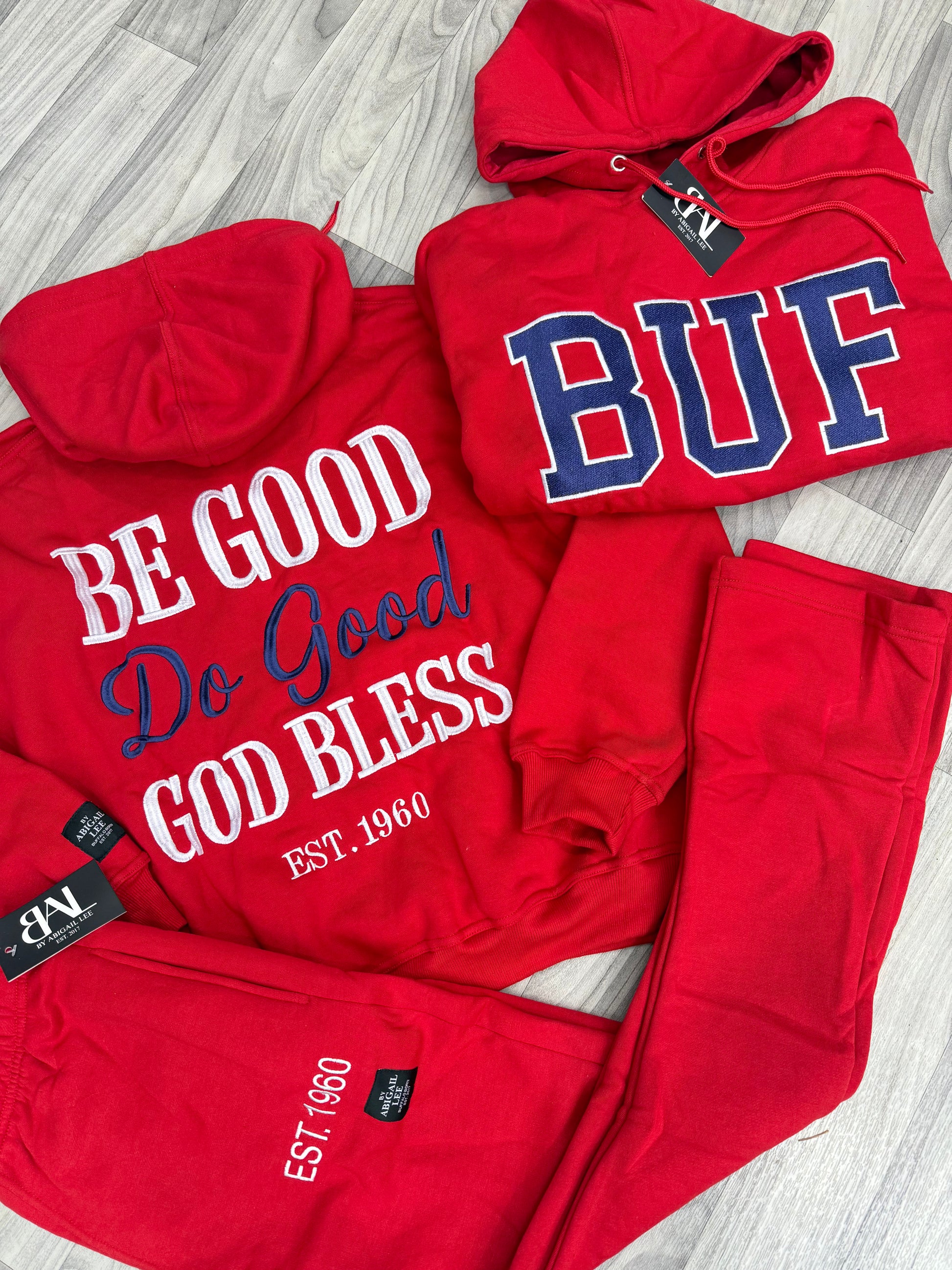 Be Good, Do Good, God Bless EMBROIDERED Red Sets