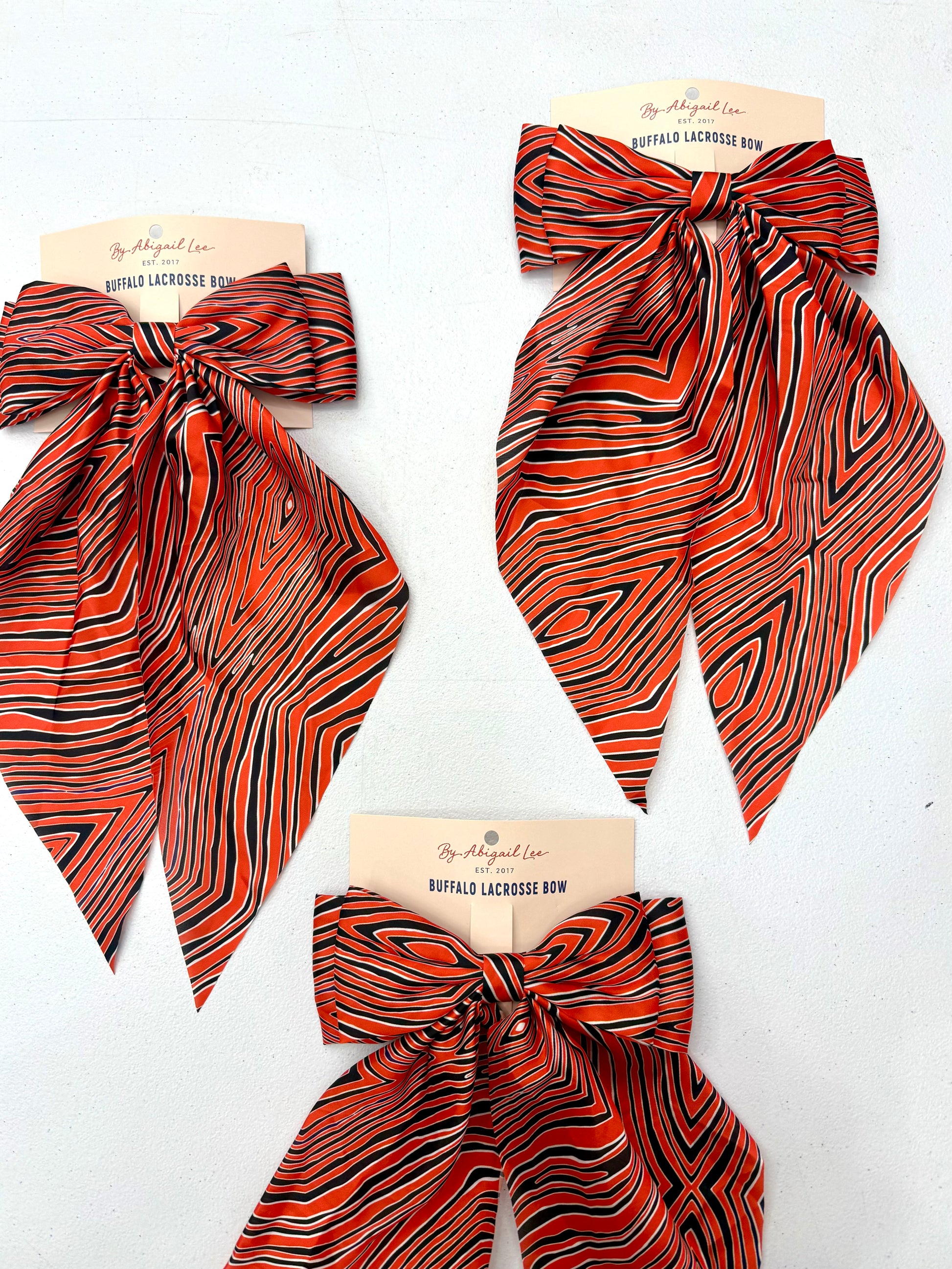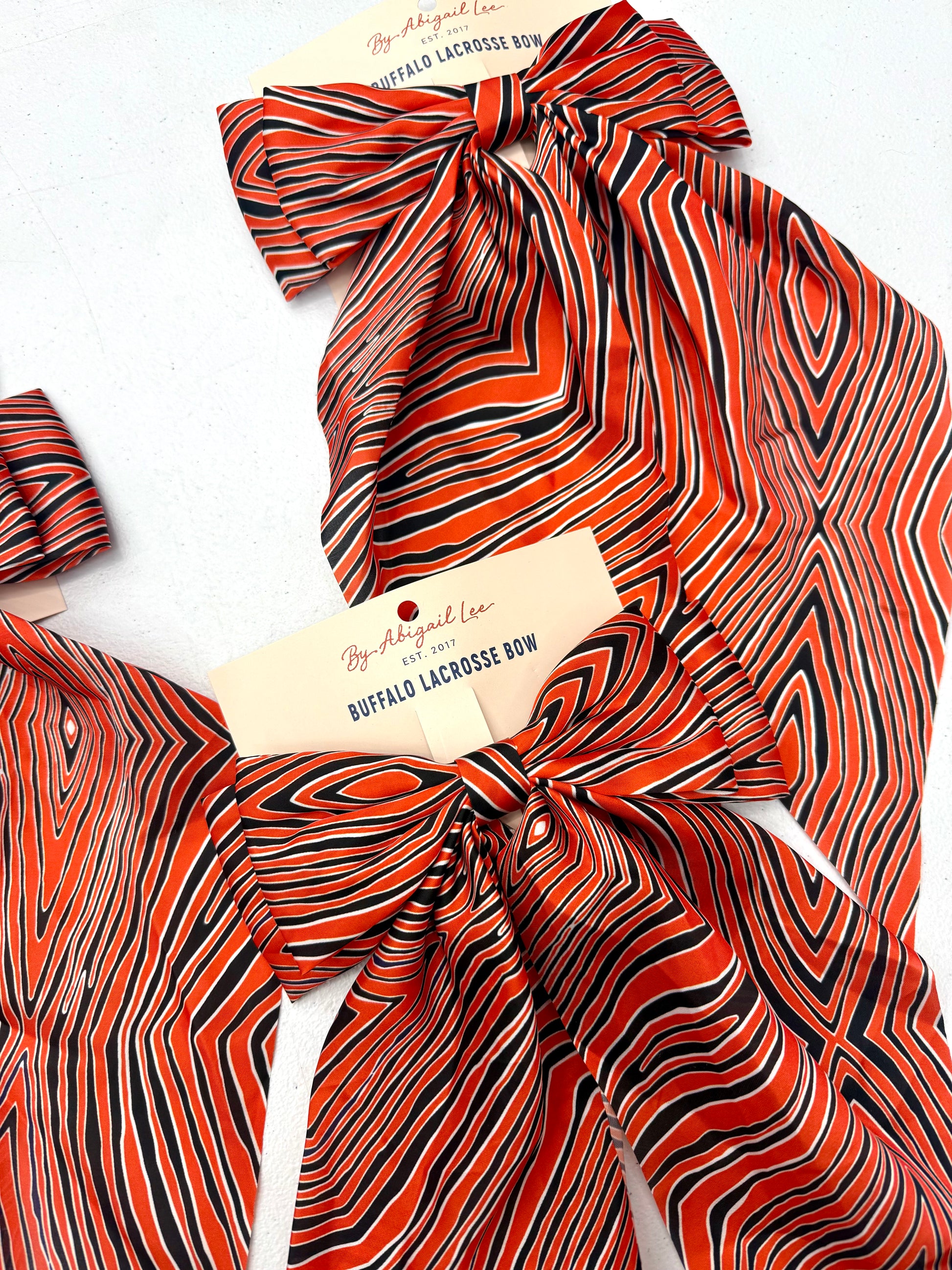 Add the perfect Buffalo-inspired finishing touch to your game-day lacrosse look. Exclusively at BAL, these super soft bows feature heavy-duty barrette clips for secure wear and custom tags inside for an elevated finish.