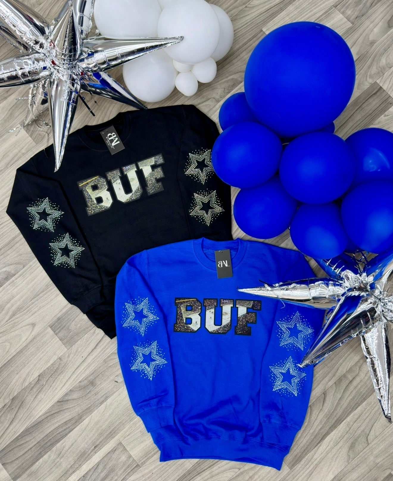 two options- classic (no stars) and starry with our hand placed rhinestone gems stars.