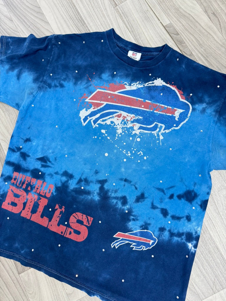 Vintage tie dye piece! Perfect to wear with leggings or boots! Hand placed gems all over front!